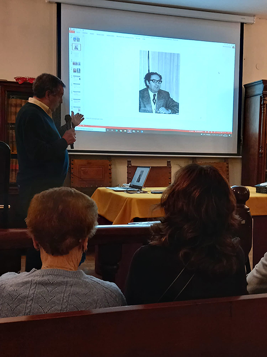 El ponente explicó cómo van los trabajos del profesor don José Antonio Lorente, catedrático de la universidad de Granada que está al mando del equipo que está cotejando estos restos óseos con los de la sepultura de Cristóbal Colón y los de Hernando Colón en la catedral de Sevilla.