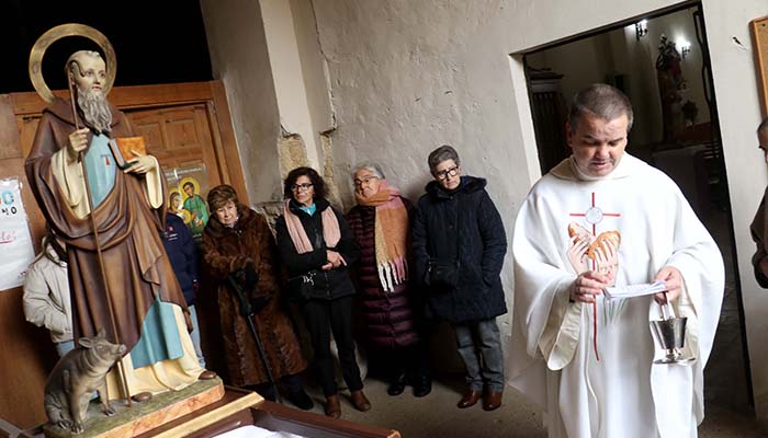 Cogolludo pone en valor sus tradiciones de San AntónTambién es tradición que  los lugareños vuelvan por la tarde al Llano Peral, derriben los montones y compartan sus viandas en torno a la ermita a la espera de que comiencen los actos religiosos. Igualmente el tiempo lo ha impedido en esta ocasión, por lo que Mauricio Muela ha  oficiado una sencilla ceremonia religiosa en la nave habilitada de la Iglesia de San Pedro.