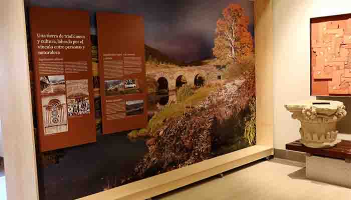 Con contenidos facilitados por el propio parque natural, los fondos museísticos son obra de la empresa HD Faber. Están hechos con materiales sostenibles con la premisa de que todos ellos se puedan reutilizar. La madera de los paneles está certificada, tratada con aceites de cera, en lugar de barnices, y no se han utilizado, en ningún caso tintas agresivas con el medioambiente, sino al agua hechas con látex. Plenamente conscientes de la monumentalidad del sitio, “nos hemos ajustado al espacio de que disponíamos”, señala Faustino de la Carrera responsable de HD Faber. Los textos están pensados para que la lectura íntegra dure 15 minutos, que es el tiempo estimado de visita.