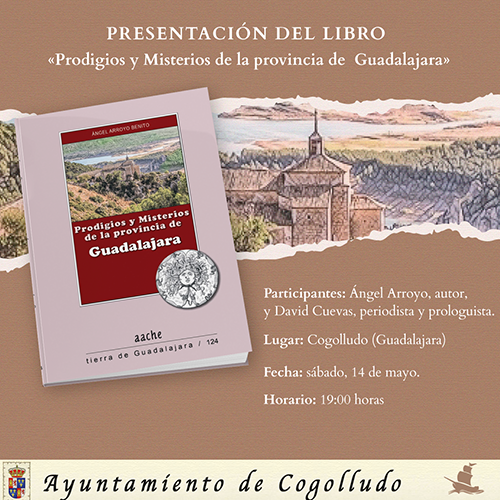 El próximo sábado, 14 de mayo, a partir de las 19.00 horas, se producirá una nueva presentación de «Prodigios y misterios de la provincia de Guadalajara», publicado conjuntamente entre «AACHE» y «Océano Atlántico Editores». Este título ha corrido a cargo del investigador, científico y escritor Ángel Arroyo, quien ha sacado a la luz el que es su primer libro en solitario.