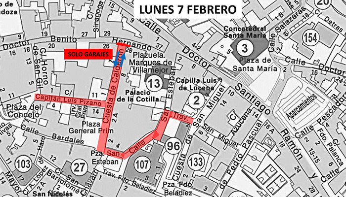Como consecuencia, no podrá transitarse el lunes 7 en Capitán Luis Pizaño y parte de la travesía San Miguel según se establece en el plano adjunto. Además, tampoco podrá estacionarse aunque sí se permitirá el paso a los garajes de la zona. Tanto la entrada como la salida a la zona se realizará por la calle Doctor Benito Hernando.