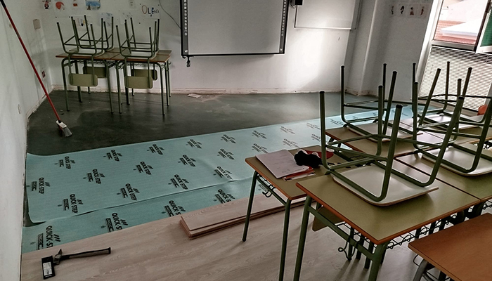Ya han comenzado los trabajos para la renovación del suelo en varios espacios del edificio municipal El Foro de Azuqueca de Henares. En concreto, se va a proceder a la instalación de tarima flotante en las siete aulas donde se imparten las clases de la Escuela Municipal de Idiomas de Azuqueca (EMIA), así como en el salón de actos. Además, se colocarán o renovarán los estores en las citadas aulas. El Ayuntamiento ha adjudicado este contrato a la pyme local Luis Esteban por un importe de 30.239,35 euros, impuestos incluidos.