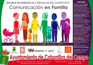 El Ayuntamiento de Cabanillas del Campo, a través de sus Servicios Sociales Municipales, lanza una nueva edición de su habitual Escuela de Familias, una iniciativa que se organiza dos veces al año (normalmente en primavera y otoño), y que en esta ocasión llevará el título «Comunicación en Familia». Esta nueva edición se desarrollará a lo largo del mes de noviembre, con cuatro sesiones a celebrar los cuatro jueves de ese mes, días 7, 14, 21 y 28, en horario 16:30 a 18:00 h. El lugar de celebración será el Centro de Día de Mayores de la localidad, en la calle Isaac Albéniz.
