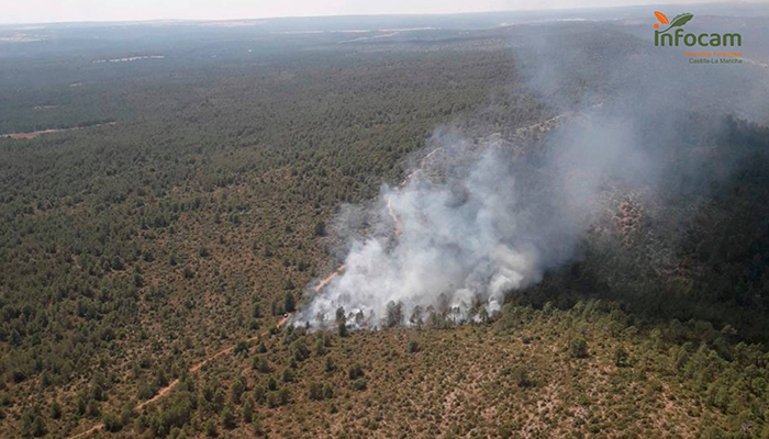 El incendio afecta a una superficie de bosque compuesto por 30% Juniperus oxycedrus (Monte bravo), 30% Juniperus phoenicea (Monte bravo), 30% Pinus pinaster (Fustal) en el paraje conocido como Las Quemdas.