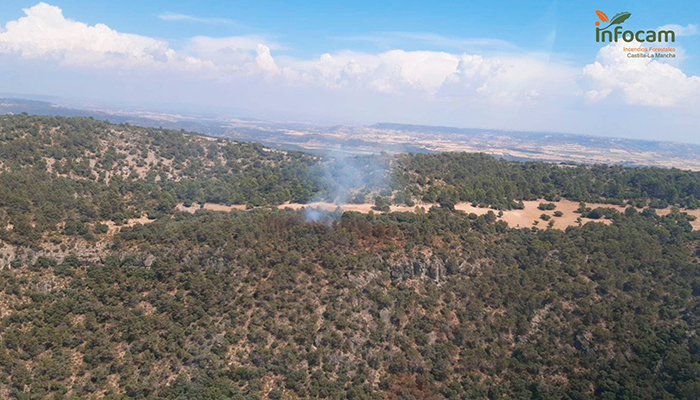 Un incendio declarado este domingo en el paraje conocido como Pico del Águila en el pantano de Buendía ha quedado controlado a las 17:22 horas aunque aún trabajan para extinguirlo dos medos y nueve personas.