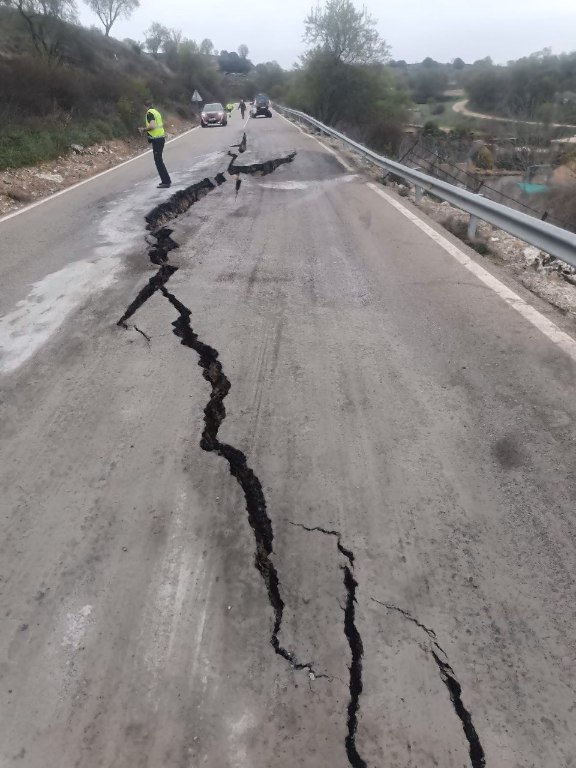 La CM-2005 en Brihuega está cortada desde su kilómetro 33 al 51 por hundimiento en una parte de la vía.