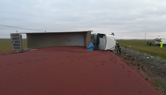 La CM-3114 ha quedado cortada en el kilómetro 33, a la altura de Villanueva de la Jara, tras el vuelco de un trailer a las 7:38 de esta mañana.