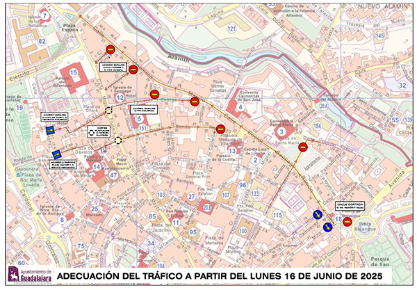 El Ayuntamiento de Guadalajara informa de cortes de tráfico programados en varias calles de la ciudad debido a trabajos de mejora del pavimento, que afectarán especialmente a la zona de Ingeniero Mariño y Ramón y Cajal a partir del próximo lunes.