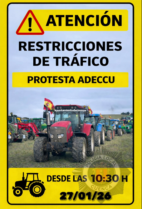 La capital conquense sufrirá restricciones de circulación desde las 10:30 horas debido a la protesta del sector primario, que recorrerá las principales arterias de la ciudad hasta el Centro de Recepción de Turistas.