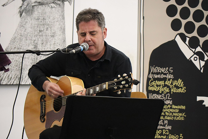 Tras la conversación, la música. José Ignacio Lapido obsequió a los asistentes con un miniconcierto acústico acompañado únicamente por la mítica Gibson. Vestido de negro rock innegociable, Lapido por fin cantó y tocó en Cuenca ante sesenta personas que guardarán ese día entre sus recuerdos imborrables.
