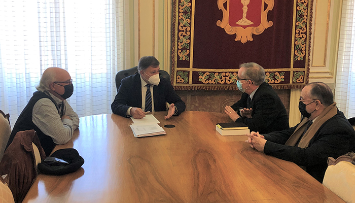 Así se lo han comunicado al alcalde, Darío Dolz, y al concejal de Cultura, Turismo y Patrimonio Histórico, Miguel Ángel Valero, en la reunión mantenida con el presidente de la Real Asociación de Cronistas de España y cronista de Leganés, Juan Alonso Resalt; el presidente honorífico de esta entidad y cronista de Orihuela y Alicante, Antonio Luis Galiano; y el cronista oficial de Cuenca y vocal de la Junta Directiva de la citada asociación, Miguel Romero, que es quien ha impulsado la celebración del evento.