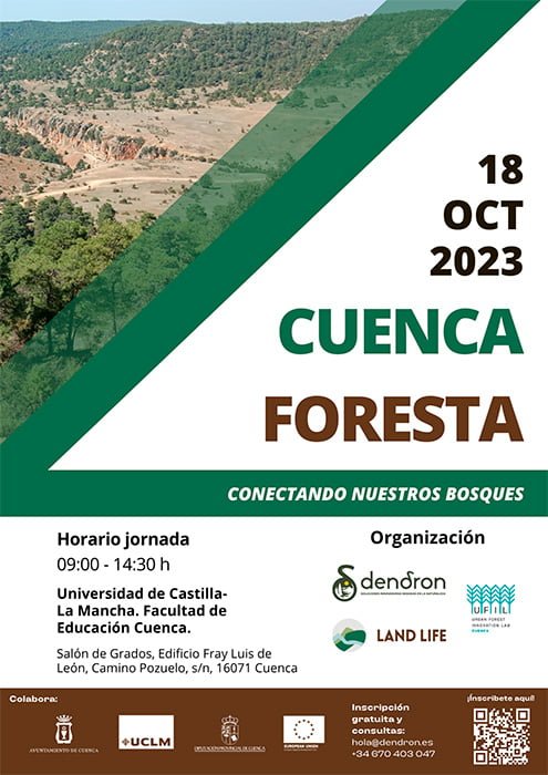 El seminario, que tendrá lugar en la Universidad de Castilla-La Mancha, está organizado por Land Life Iberia, empresa de restauración ambiental con sede en Burgos dedicada a la reforestación de precisión a gran escala; Dendron, consultoría forestal basada en soluciones innovadoras basadas en la naturaleza; y UFIL, programa para el emprendimiento en bioeconomía forestal de Cuenca. También colaboran el Ayuntamiento de Cuenca y la Diputación Provincial de Cuenca.