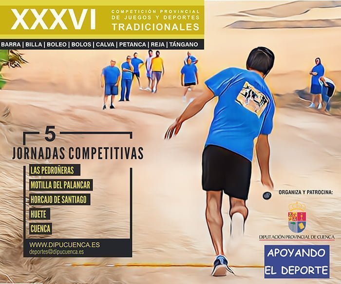 La Diputación de Cuenca ya tiene preparado la XXXVI edición de la competición provincial de Juegos y Deportes Tradicionales que engloba las prácticas populares de estas actividades que forman parte del patrimonio cultural conquense. Este circuito comienza el próximo 16 de julio con la prueba de Las Pedroñeras y finaliza el 20 de agosto en Cuenca capital, precisamente el retorno de la ciudad a la competición es la principal novedad, ya que llevaba varios años sin albergar una jornada.