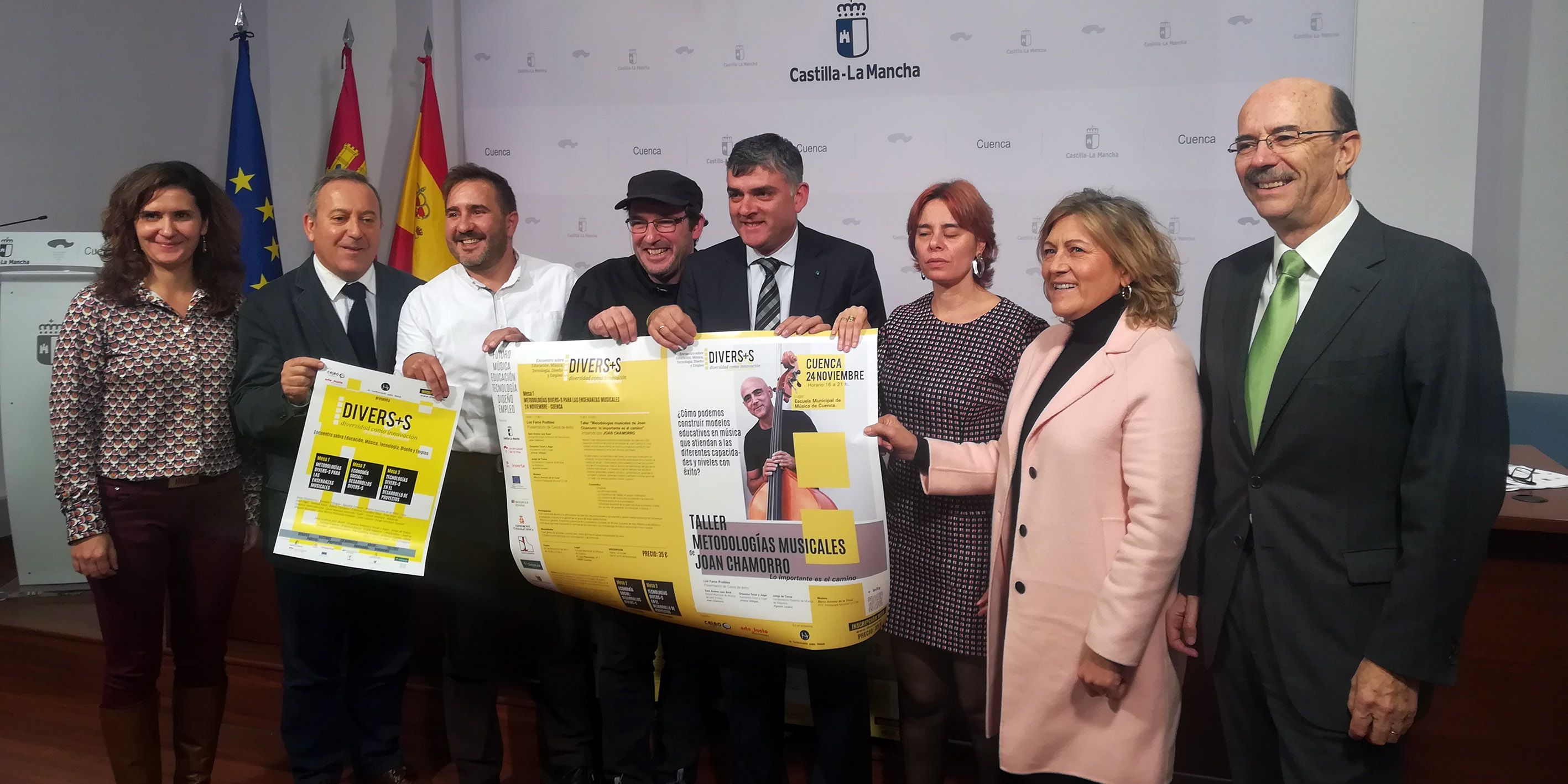 Los días 24 de Noviembre, 1 y 2 de diciembre tendrá lugar en Cuenca el congreso «Divers+s» que mostrará la diversidad como factor de innovación. A la presentación de esta mañana han acudido el delegado de la Junta de Cuenca, Ángel Tomás Godoy, las directoras general y regional de Inserta Empleo de la Fundación ONCE, Virginia Carcedo y Cristina González, el delegado territorial de Iberdrola en C-LM, Venancio Rubio, los organizadores del congreso Juan Lázaro y Jorge Sánchez y representantes del Consorcio de Cuenca y Global Caja, entre otros.