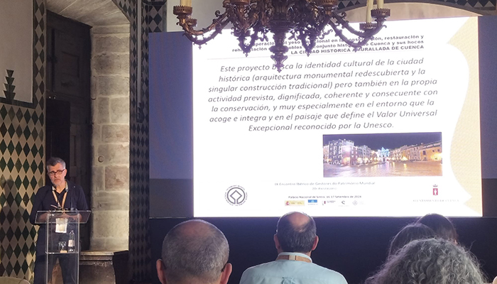 Cuenca ha compartido junto al Grupo de Ciudades Patrimonio su experiencia en el IX Encuentro Ibérico de Gestores del Patrimonio Mundial de España y Portugal, celebrado en Sintra los días 16 y 17 de septiembre. Concretamente, el representante del Ayuntamiento de Cuenca, Juan José Arteaga, ha expuesto como caso de buenas prácticas la recuperación del yeso tradicional en la conservación, restauración y rehabilitación de inmuebles del conjunto histórico de Cuenca y sus hoces.