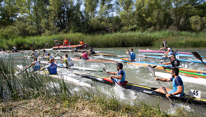Pasadas las 17.30 horas y con más de 35ºC a la orilla del río, la charanga daba un especial y taurino pistoletazo de salida a la prueba federada en el paraje denominado La Gravera, en Morillejo. Al grito de “¡Viva el piragüismo!” por parte de uno de los participantes, más de 60 piragüistas lucharon por posicionarse entre los primeros lugares, viviéndose momentos de gran emoción y cierto caos. Varios vuelcos y algún palazo fueron, no obstante, los únicos y leves accidentes que se presenciaron en esos primeros y más desordenados momentos de la carrera.