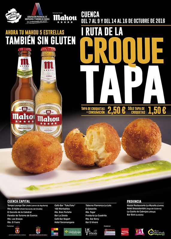 Cuenca va a acoger durante los dos próximos fines de semana, del 7 al 9 y del 14 al 16 de octubre, la I Ruta de la CroqueTapa en la que la croqueta será la principal protagonista, y en la que van a participar un total de 22 establecimientos. De ellos 18 pertenecen a Cuenca capital y 4 a la provincia.