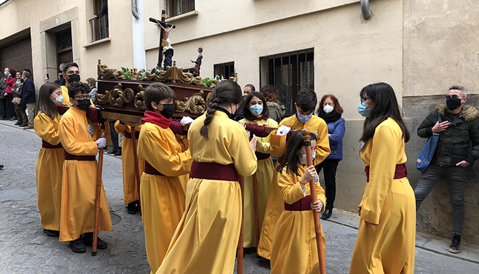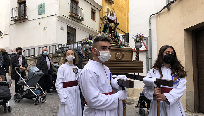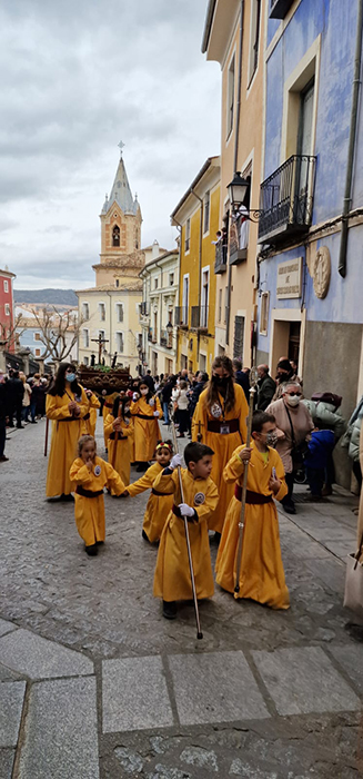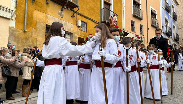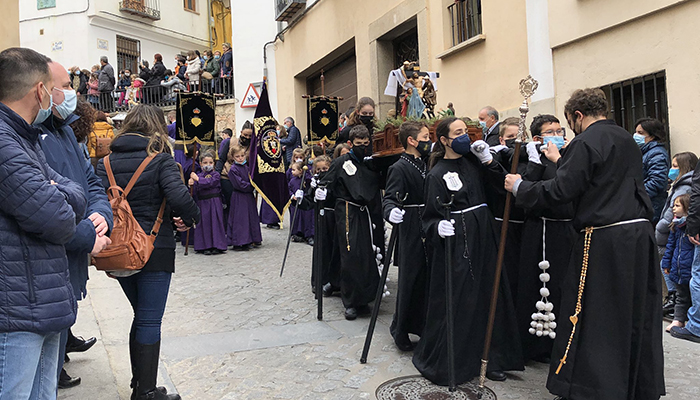 Un total de 23 hermandades han desfilado esta mañana por las calles del Casco Antiguo, encabezada por la Banda de Trompetas y Tambores de la Junta de Cofradías de Cuenca.