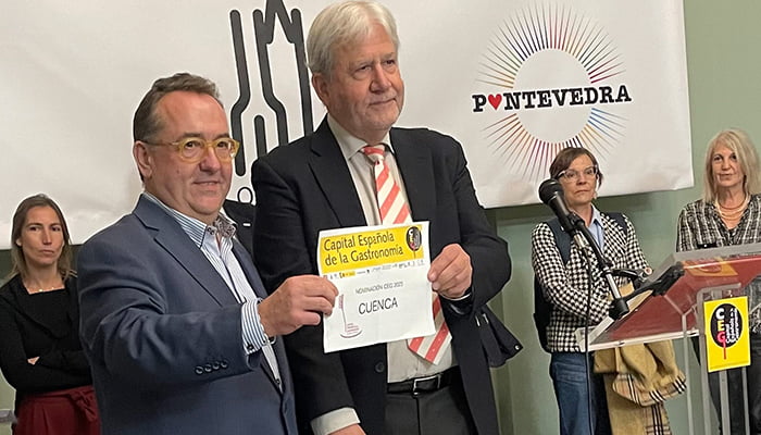 El Jurado ha otorgado por unanimidad el título de Capital Española de la Gastronomía 2023 (CEG) a la ciudad de Cuenca, en una reunión celebrada esta mañana en la sede de CEG, en Madrid. En su valoración reconocen que «las tres ciudades participantes (Cuenca, Oviedo y Pontevedra) han concurrido con proyectos sólidos, dignos de ser elegidos y el Jurado está convencido que en el futuro podrán resultar ganadores».