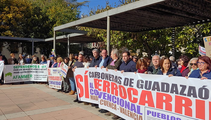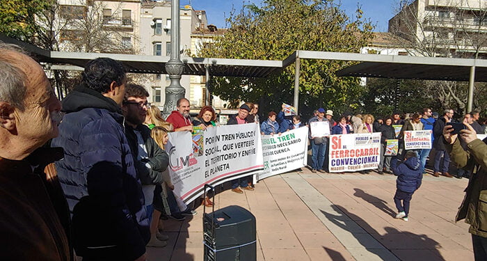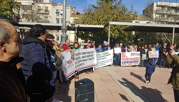 La concentración, en la Plaza de España de la capital conquense, ha finalizado con un manifiesto leído por el portavoz de la Plataforma en Defensa del Ferrocarril Público y Social de Cuenca, Francisco de los Cobos, donde ha reclamado además de la reapertura de la línea inversiones suficientes para hacerla competitiva. En este sentido, ha pedido al Ministerio de Transportes que reconozca la deuda adquirida con la provincia de Cuenca en las últimas décadas.