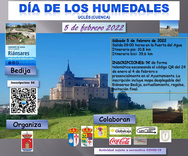 El sábado 5 de febrero se celebra el Día de los Humedales. Uclés. Organiza el Ayuntamiento de Uclés con la colaboración de las localidades de El Acebrón, Fuente de Pedro Naharro y Tribaldos, la Asociación Cultural Urcela, la Asociación Cultural “CuenCANP”, Cocacola, Globalcaja, Alfarería Hernansanz y Aperitivos la Clementina.
