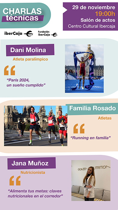 Estas charlas se realizan gracias a la colaboración con Ibercaja, patrocinador de la prueba y la cesión del espacio por parte de Fundación Ibercaja, comprometido con la labor divulgativa del Club de Atletismo La Esperanza.