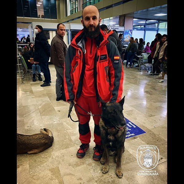 El bombero del Ayuntamiento de Guadalajara, David, y su perro Vito regresan a Guadalajara después de haber participado en las labores de rescate tras el terromoto que ha asolado parte de Turquía y Siria con la gran satisfacción de haber rescatado a dos personas tras varios días sepultadas.