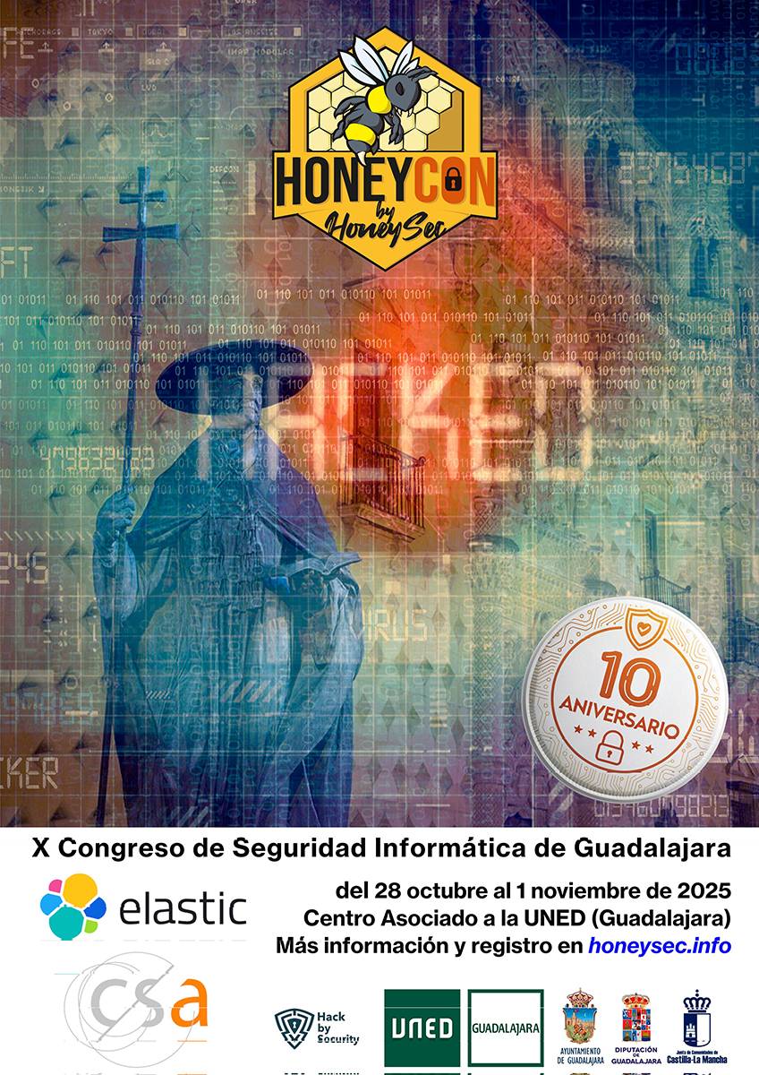 Del martes 28 de octubre al sábado 1 de noviembre de 2025 tendrá lugar en la ciudad de Guadalajara la décima edición del congreso organizado por la Asociación HoneySEC, asociación sin ánimo de lucro dedicada a promover buenas prácticas en materia de seguridad informática y en el uso responsable de las nuevas tecnologías.
