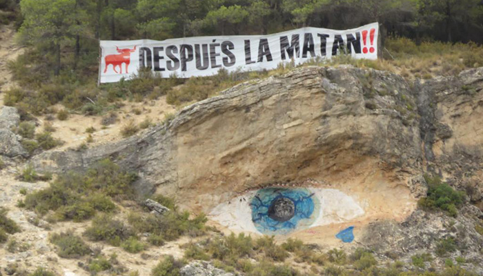 En la pancarta, se aprecia la silueta de una vaquilla, y recalca: ”Después la matan». Desde la Coordinadara creen que el slogan ha sido elegido para evidenciar que todavía hay mucha gente que piensa que los desdichados animales «solo pasan un mal trago», y que luego se les devuelve a su vida, idílica en la dehesa… Nada más lejos de la realidad ya que según recuerdan, la normativa taurina de Castilla – La Mancha, deben ser sacrificadas tras su suelta en las siguientes 12 horas.