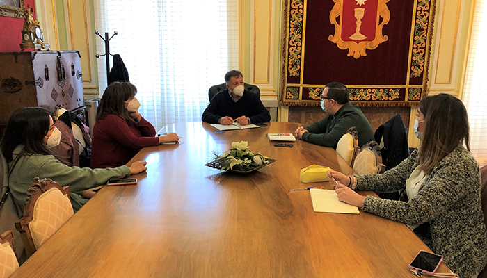 El alcalde Darío Dolz ha mantenido una reunión con el nuevo presidente de la Asociación de la Prensa de Cuenca, Leo Cortijo, y con parte de su Junta Directiva, conformada por Sara Batres como secretaria, Aurora Duque como tesorera y los vocales Mari Carmen Linuesa, Carmen Acedo y Miguel Ángel Ramón.
