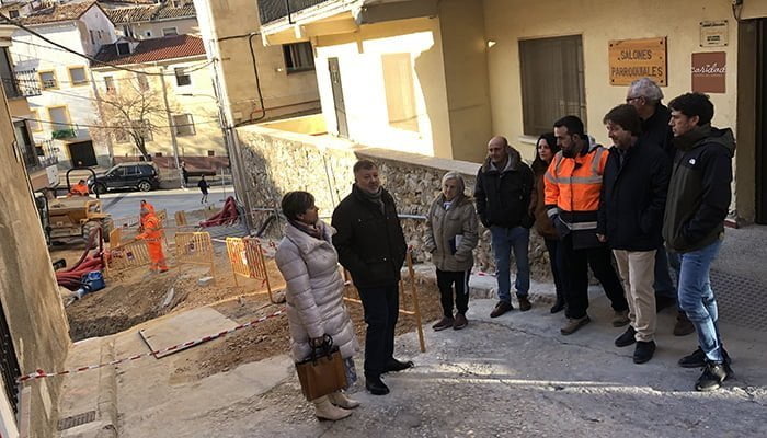 Las obras en calle Almendros, en el barrio de Tiradores Bajos, avanzan a buen ritmo. El alcalde, Darío Dolz, las ha visitado junto a las concejalas de Urbanismo y Aguas, Nelia Valverde, y de Participación Ciudadana, Barrios y Pedanías, Asunción Moriana, así como los técnicos responsables y vecinos del barrio.