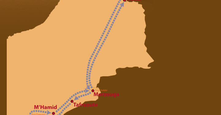La programación habitual de Plazaventura incluye la visita de Midelt, a 1.500 metros de altitud, punto de partida para emprender la travesía del Alto Atlas, Erfoud, con el mayor oasis de Marruecos y, por fin, Erg Chebbi con una longitud de 22 km y 5 de anchura, con dunas de 150 m.