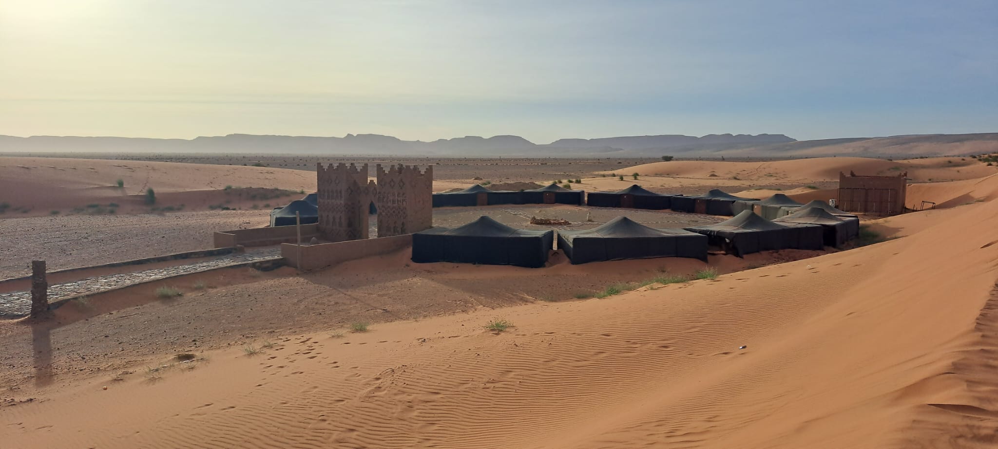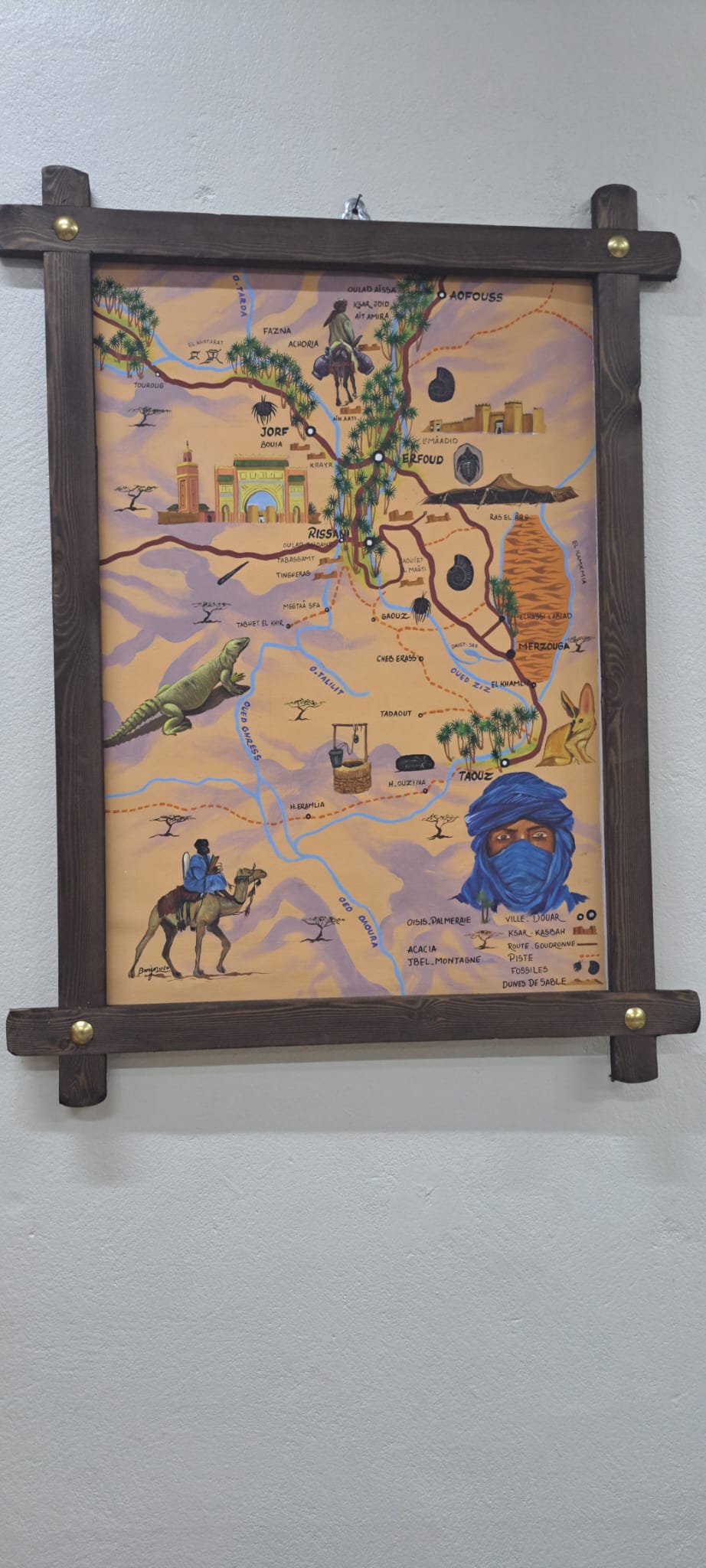 Erfoud es una ciudad situada al sur de Marruecos, en el valle del río Ziz, río que desde las cumbres del Atlas baja al sur, para morir en las arenas del Sahara, formando en su recorrido el palmeral del Tafilalet, rodeado de una amplia Hamada (llanura pedregosa), salpicada de zonas de dunas.