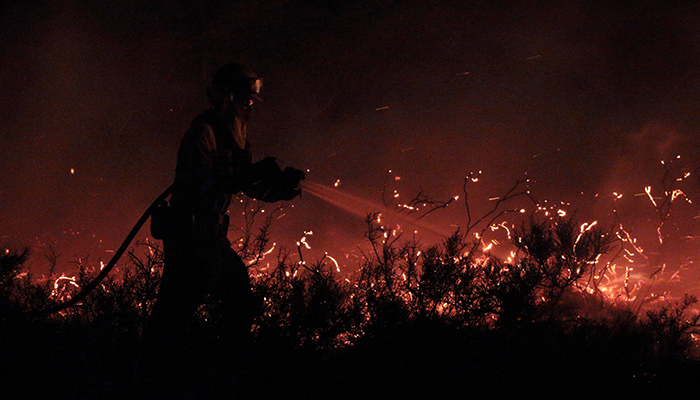 La galería fotográfica publicada consta de un total de 11 imágenes que muestran el trabajo de varios bomberos luchando contra un incendio forestal en plena noche. Las instantáneas van acompañadas de un texto del propio fotógrafo.