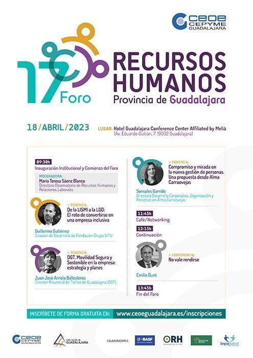 CEOE-CEPYME Guadalajara celebrará el próximo martes 18 de abril su 17º Foro de Recursos Humanos de la provincia de Guadalajara, evento ya consolidado como un punto de encuentro para los profesionales de este sector.