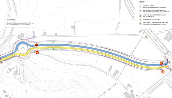 Por su parte, los peatones seguirán accediendo por el Camino de El Terminillo, con cruces del nuevo vial a la altura de la rotonda en construcción por pasos de peatones debidamente señalizados.