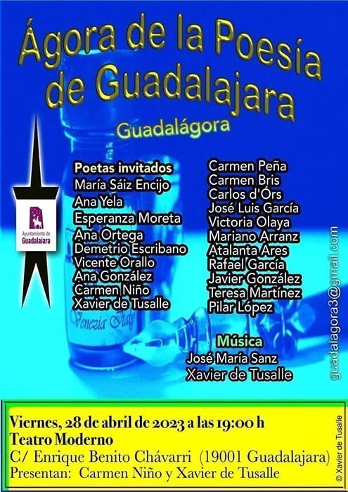 Este viernes, a las 19:00 horas, regresa al Teatro Moderno la actividad ‘Ágora de la poesía. Guadalágora’, dentro de la programación cultural del Ayuntamiento de Guadalajara ‘Escenarios de primavera’.