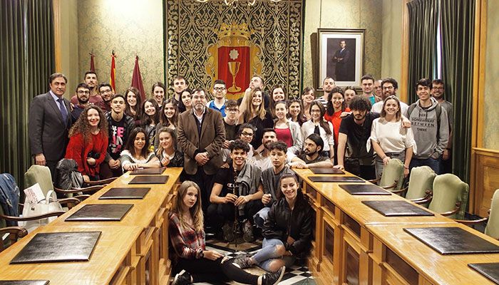 El alcalde de Cuenca, Ángel Mariscal y el concejal de Atención a las Personas e Igualdad, José María Martínez han recibido en el Salón de Plenos a un grupo de 35 jóvenes procedentes de Francia, Italia, Grecia, Portugal, Bulgaria y España que participan en un intercambio del programa ERASMUS+.