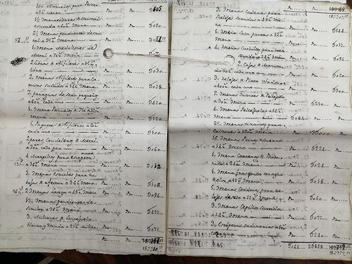 El documento es una muestra más de la importancia que tienen nuestros Archivos Históricos por la riqueza de los fondos documentales en ellos conservados. Con ellos, les invitamos a trasladarnos en el tiempo e ir de compras hace 215 años, en la ciudad de Cuenca, de la mano de una relación de mercaderías, de géneros, que compraban los mercaderes y que se vendían en la ciudad de Cuenca, o que conservaban almacenados para venderlos en cualquier época del año. Con estos datos tan interesantes tendremos un conocimiento más cercano y fiel de la vida de principios del siglo XIX. Estas relaciones o inventarios de géneros introducidos por aquellos comerciantes, entre los que hubo varias mujeres, se hicieron para saber qué parte de determinados impuestos, que gravaban aquellas mercadurías, correspondía ingresar en Hacienda. Estos géneros de comercio no sólo procedían de diversas ciudades y pueblos de España, sino que, también llegaron desde el extranjero.