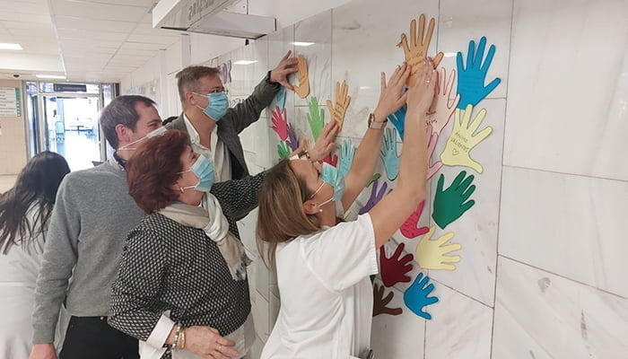 El árbol de la vida ha sido el símbolo escogido para celebrar el Día Internacional del Cáncer Infantil 2023. La iniciativa ha contado con la colaboración de los profesores del Equipo de Atención Educativa Hospitalaria y Domiciliaria (Aula La Pecera) y el área de Humanización. Niños y niñas, profesionales y usuarios han recortado siluetas de sus manos y han escrito mensajes de apoyo y ánimo para los pequeños que sufren cáncer y sus familias. Con esas siluetas se han compuesto árboles que decoran los vestíbulos del Hospital y del centro materno-infantil azudense.