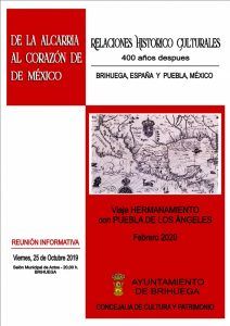 El Ayuntamiento de Brihuega prepara un viaje de hermanamiento con Puebla de Los Ángeles, la actual Puebla de Zaragoza, para febrero de 2020. El viernes 25 de octubre explicarán el proyecto en el salón municipal de actos, para quien quiera sumarse a la expedición, hasta un límite de treinta, sufragando sus propios gastos. El año que viene se cumplen 400 años del último viaje documentado en el libro Relaciones ‘Trasatlánticas en el imperio español. Brihuega, España, y Puebla, México. 1560-1620’, presentado en junio del año pasado por su autora, la doctora Ida Altman
