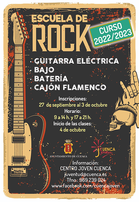 La Escuela de Rock tiene diferentes modalidades, como son guitarra eléctrica, bajo, batería y cajón flamenco, y las clases se iniciarán el 4 de octubre en el mismo Centro Joven.