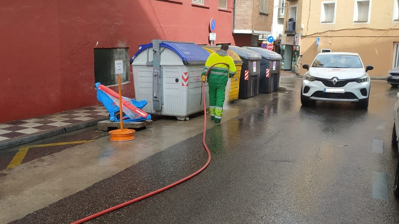 El Ayuntamiento de Cuenca está llevando a cabo una limpieza exhaustiva por la ciudad a través de la concesionaria de Limpieza FCC consistente en  baldeos en acerados y calzada, haciendo especial hincapié en los espacios reservados para contenedores, cuyo suelo queda especialmente sucio.