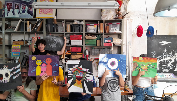 Durante los talleres, que se han desarrollado en la última semana del mes de julio, y ésta primera de agosto, las personas inscritas han participado en actividades de dibujo y pintura; de pintura de murales; de grabado; de serigrafía y de monotipo de color.