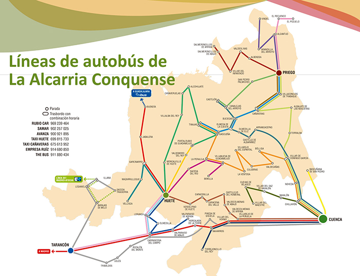 El Ayuntamiento de Huete ha publicado la información de los horarios y rutas de autobuses en la comarca de la Alcarria Conquense, que ha realizado el CEDER Alcarria Conquense para información general. Se trata de las distintas líneas de transporte regular por carretera de las que se dispone.
