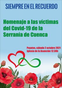 El consistorio local de Poyatos y la entidad cultural Ribera del Escabas han organizado conjuntamente un homenaje a las víctimas y familiares de las personas que han fallecido con la pandemia del coronavirus, que tendrá lugar el próximo domingo a partir de las diez y cuarto de la mañana en la Iglesia de La Asunción de este municipio. El acto se iniciará con una misa de acción de gracias ofrecida por el párroco de la localidad para luego escuchar la intervención de la profesora y directora del colegio público Virgen de La Rosa, de Beteta, Pilar Pérez Espejo. Inmediatamente se inaugurará el monumento realizado para la ocasión por el escultor-alfarero, Antonio Hernansanz González que quedará ubicado en el pórtico del templo. La clausura la pondrá la música del cuarteto Alcarria String que interpretará un repertorio con obras clásicas.El alcalde de Poyatos, Antonio Hernandez, ha subrayado que se trata de una iniciativa para inmortalizar en la memoria a cuantas personas nacidas en los pueblos de la Serranía hayan fallecido en las ciudades donde residían. El primer edil ha añadido que así no olvidaremos a cuantas personas abandonaron su estancia entre nosotros después de haber trabajado incansablemente para sacar adelante a España.
