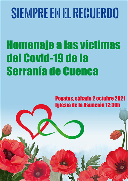 El consistorio local de Poyatos y la entidad cultural Ribera del Escabas han organizado conjuntamente un homenaje a las víctimas y familiares de las personas que han fallecido con la pandemia del coronavirus, que tendrá lugar el próximo domingo a partir de las diez y cuarto de la mañana en la Iglesia de La Asunción de este municipio. El acto se iniciará con una misa de acción de gracias ofrecida por el párroco de la localidad para luego escuchar la intervención de la profesora y directora del colegio público Virgen de La Rosa, de Beteta, Pilar Pérez Espejo. Inmediatamente se inaugurará el monumento realizado para la ocasión por el escultor-alfarero, Antonio Hernansanz González que quedará ubicado en el pórtico del templo. La clausura la pondrá la música del cuarteto Alcarria String que interpretará un repertorio con obras clásicas.El alcalde de Poyatos, Antonio Hernandez, ha subrayado que se trata de una iniciativa para inmortalizar en la memoria a cuantas personas nacidas en los pueblos de la Serranía hayan fallecido en las ciudades donde residían. El primer edil ha añadido que así no olvidaremos a cuantas personas abandonaron su estancia entre nosotros después de haber trabajado incansablemente para sacar adelante a España.