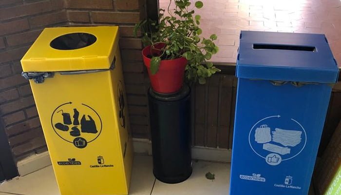 Una vez depositados los residuos en estas papeleras, amarillas y azules, los trabajadores públicos de cada recurso municipal se encargan de depositarlo en el contenedor correspondiente.