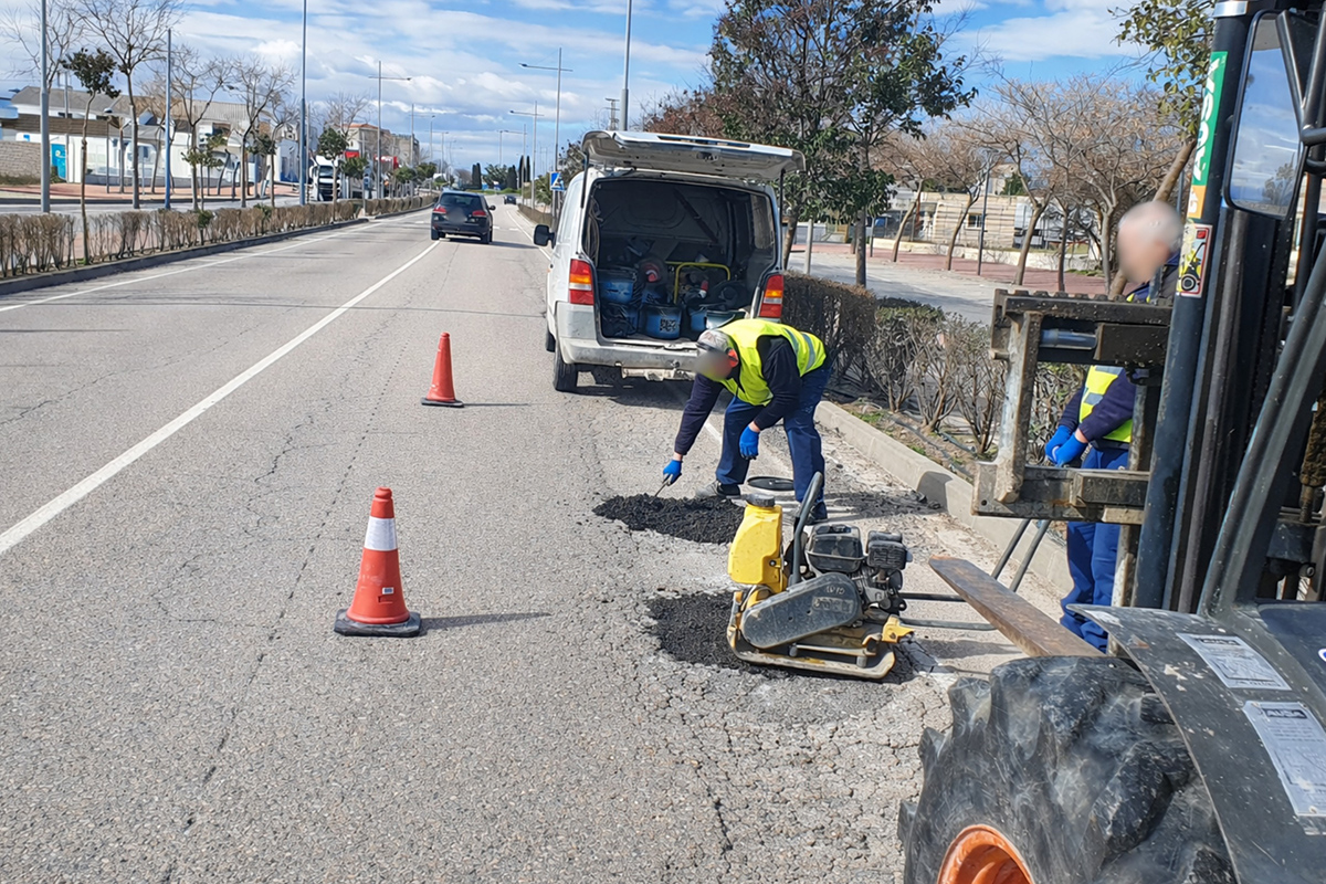 Desde el departamento municipal de Obras y Servicios han comenzado hoy en la avenida Adolfo Suárez a reparar desintegraciones del pavimento, que ya existían y se han incrementado por las intensas lluvias, o que se han originado nuevas por el temporal, e igualmente estas labores de reparación llegarán a otras zonas. También las tareas de limpieza viaria se han intensificado.