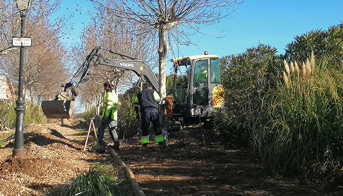 El parque longitudinal está formado por dos tramos de 182 y 162 metros, actualmente con un camino central de tierra de un ancho aproximado de 4 metros, flanqueado por árboles y arbustos de diferente porte, sobre una cama de grava. La intención es pavimentar con hormigón impreso de 8-10 centímetros de espesor esa superficie central, de más de 1375 metros cuadrados. Además, se procederá a restituir la capa de tierra de los laterales, una vez que se haya colocado debajo de la misma una malla antihierbas. En este caso, la superficie estimada de actuación rondaría los 4.000 metros cuadrados. El objetivo es reducir y facilitar el mantenimiento del parque, para destinar los recursos municipales a otras áreas.